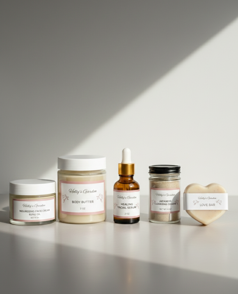 It all began in my kitchen over 30 years ago. As a Chef and Nutrition Counselor, I looked for a simple face cream using pure ingredients without chemicals, and I didn’t find any that I liked, so I set out to learn how to make my own, free from chemicals, parabens, and sulfates.